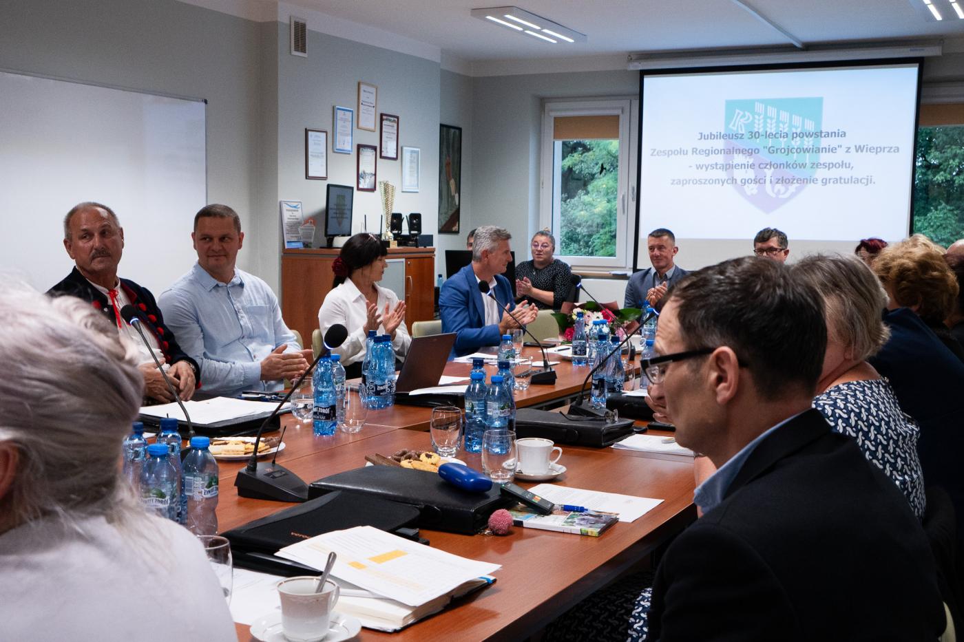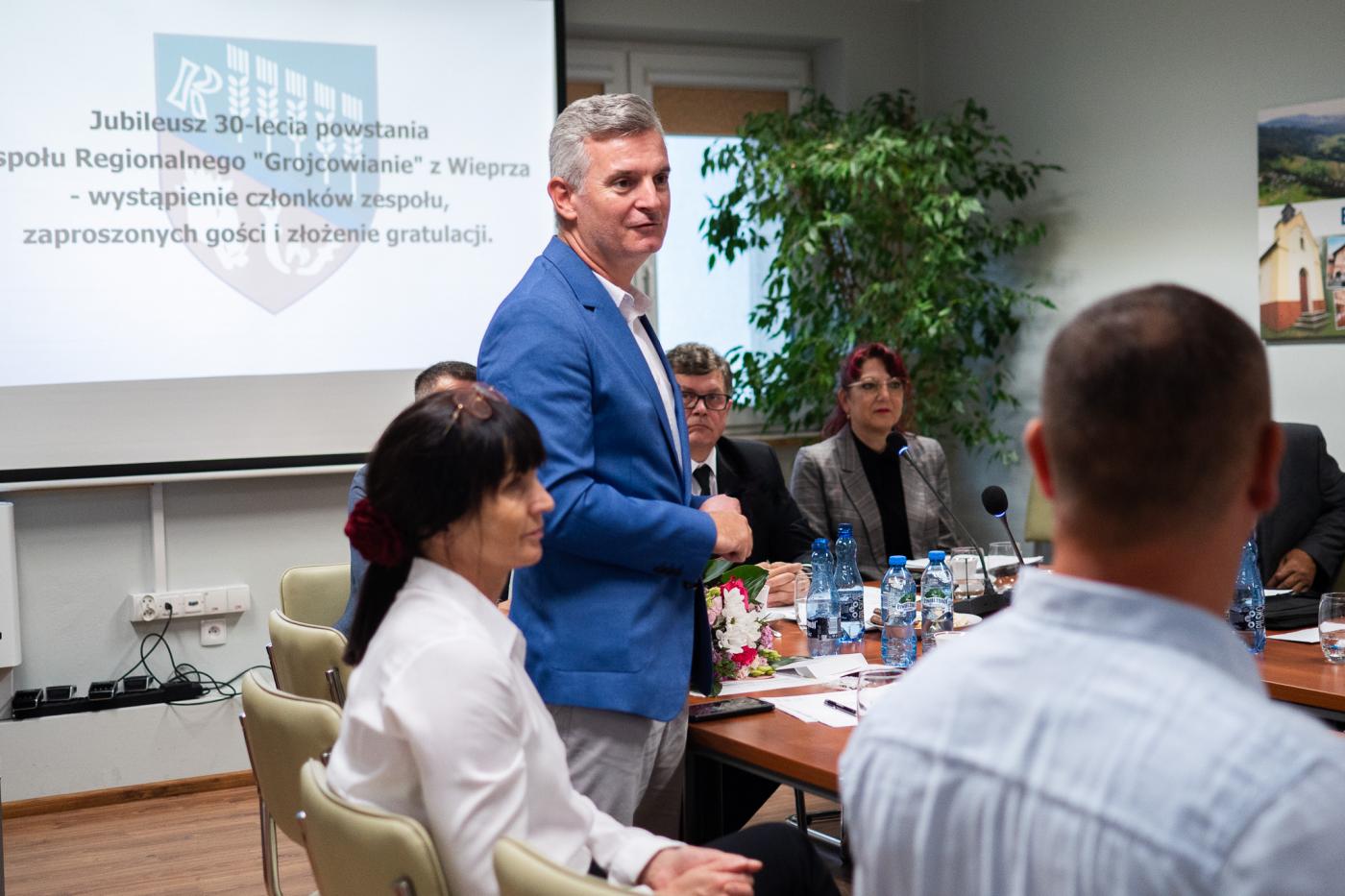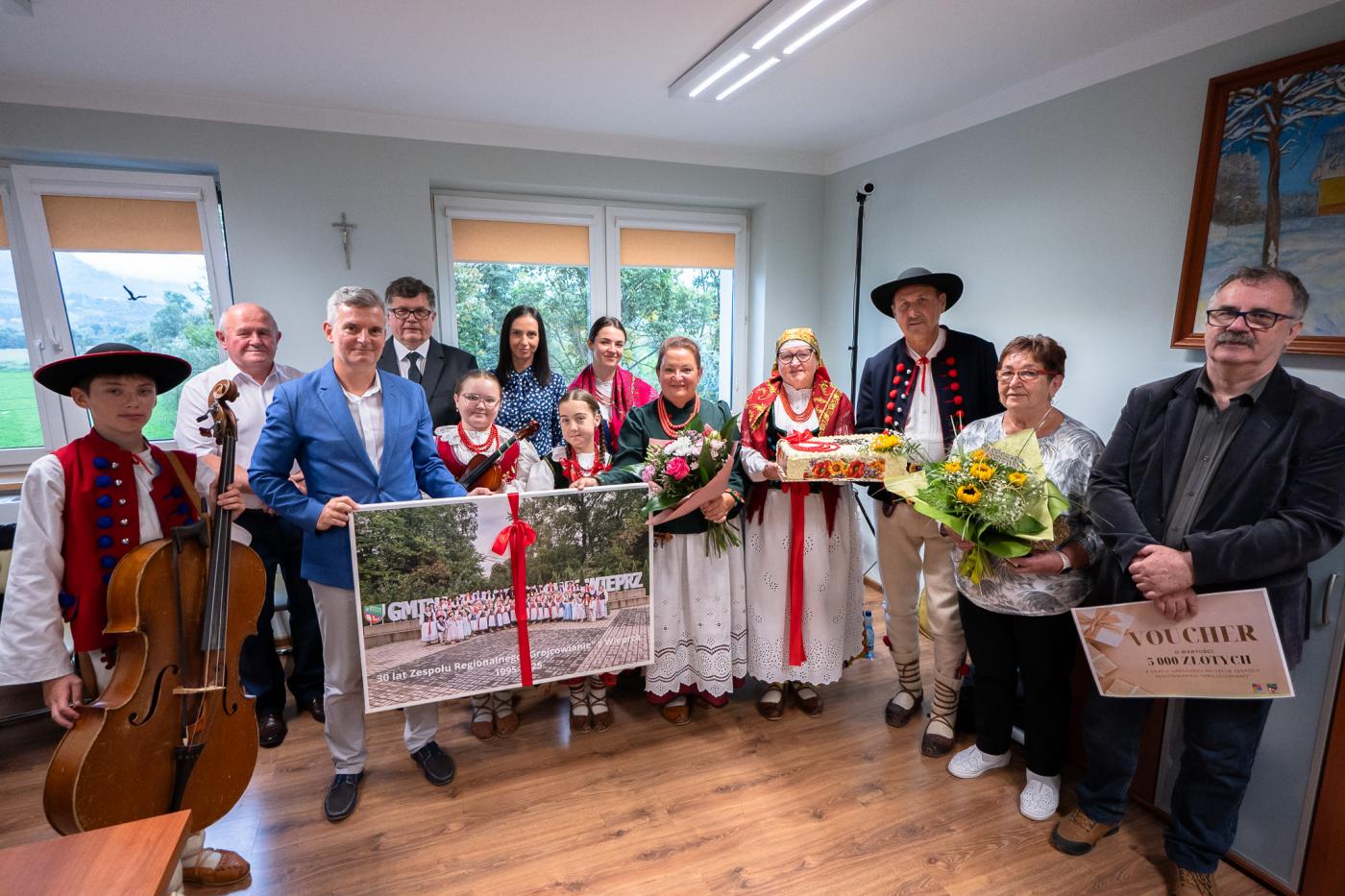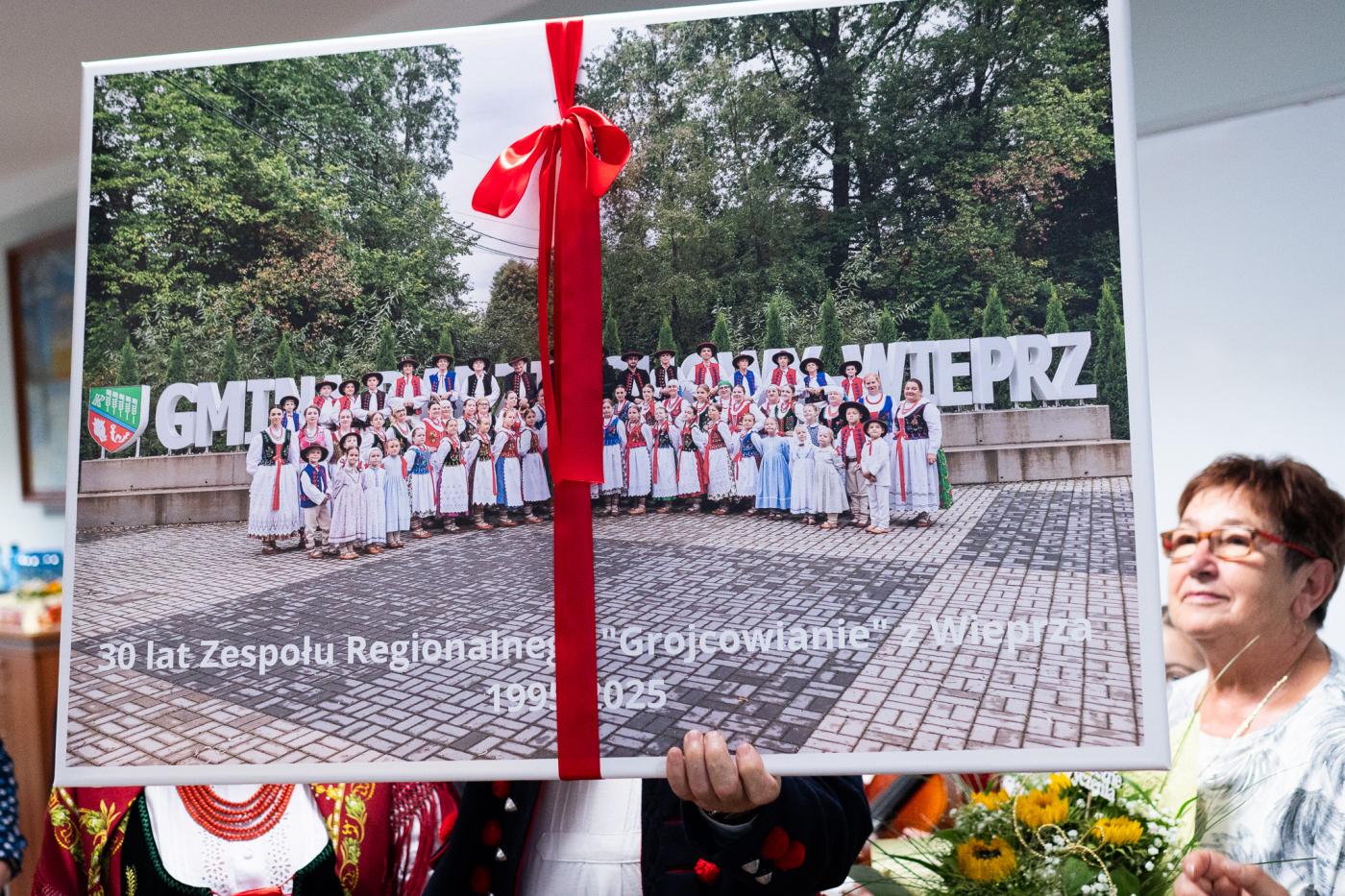 Podczas dzisiejszej Sesji Rady Gminy Radziechowy-Wieprz mieliśmy zaszczyt świętować wyjątkowy Jubileusz 30-lecia Zespołu Regionalnego „Grojcowianie”! Na początku uroczystości przypomniana została bogata historia zespołu – od pierwszych występów, przez liczne nagrody i wyróżnienia, aż po udział w konkursach, przeglądach i festiwalach w kraju i za granicą. To piękne świadectwo trzydziestu lat pracy, pasji i oddania tradycji, które stały się wizytówką naszej gminy. Nie zabrakło wzruszających chwil – przemówienia gości, prezentów, pięknych słów kierownik zespołu Jadwigi Jurasz, gratulacji i podziękowań za trzy dekady pielęgnowania naszej tradycji i kultury. „Grojcowianie” zaprezentowali krótki występ, a także przygotowali niezwykły prezent dla Gminy – pamiątkowe zdjęcie zespołu na tle napisu Radziechowy-Wieprz. Uroczystość zwieńczył wspólny, słodki akcent – jubileuszowy tort przygotowany przez samych jubilatów. Z całego serca dziękujemy Stowarzyszeniu Społeczno-Kulturalnemu "Grojcowianie" w Wieprzu za wszystkie lata niestrudzonego propagowania kultury, tradycji i piękna naszego regionu. Dzięki Waszej pasji, zaangażowaniu i miłości do folkloru młode pokolenia mogą czerpać z bogactwa dziedzictwa przodków jak z silnych korzeni drzewa, które daje życie i trwałość.