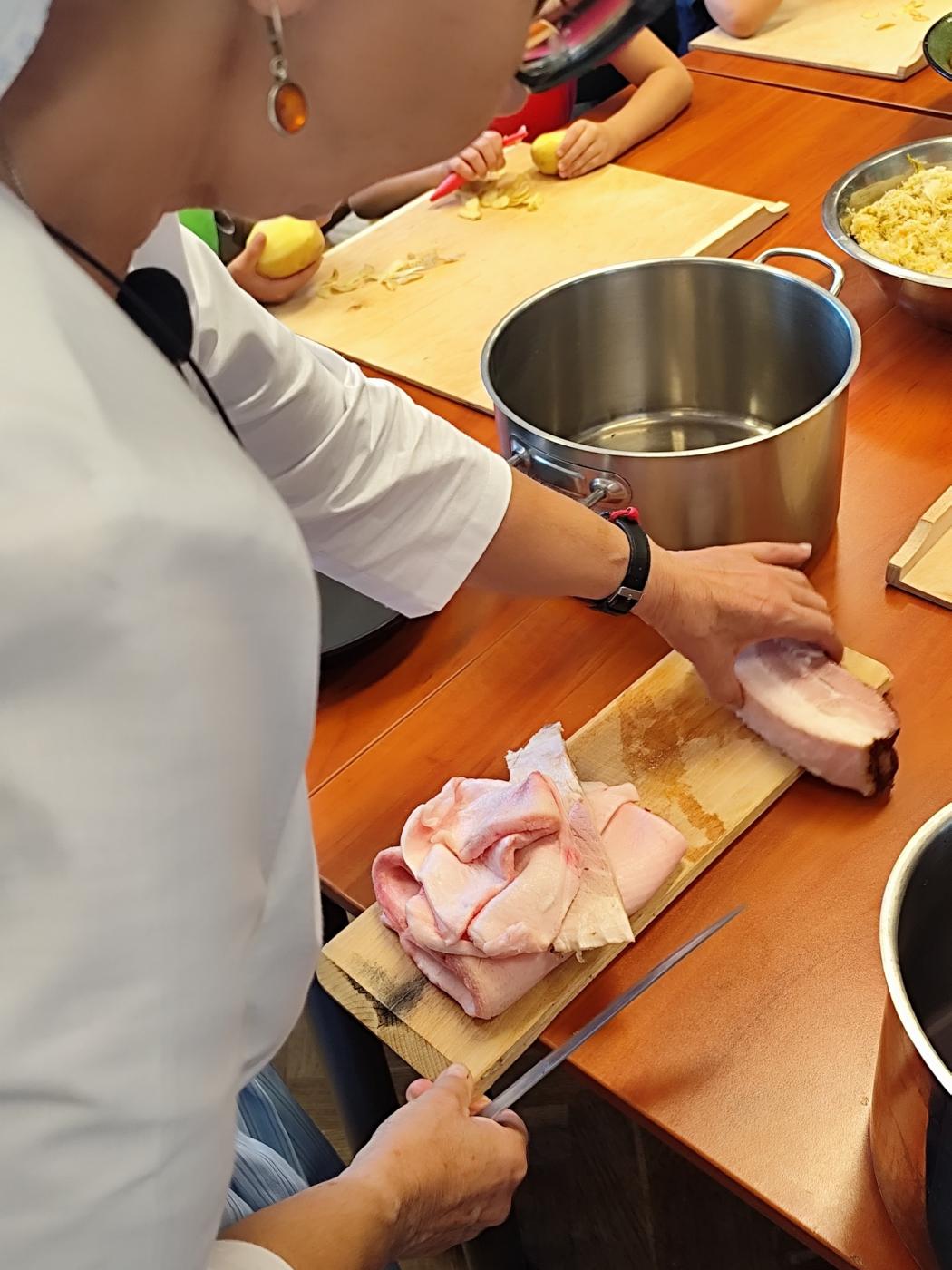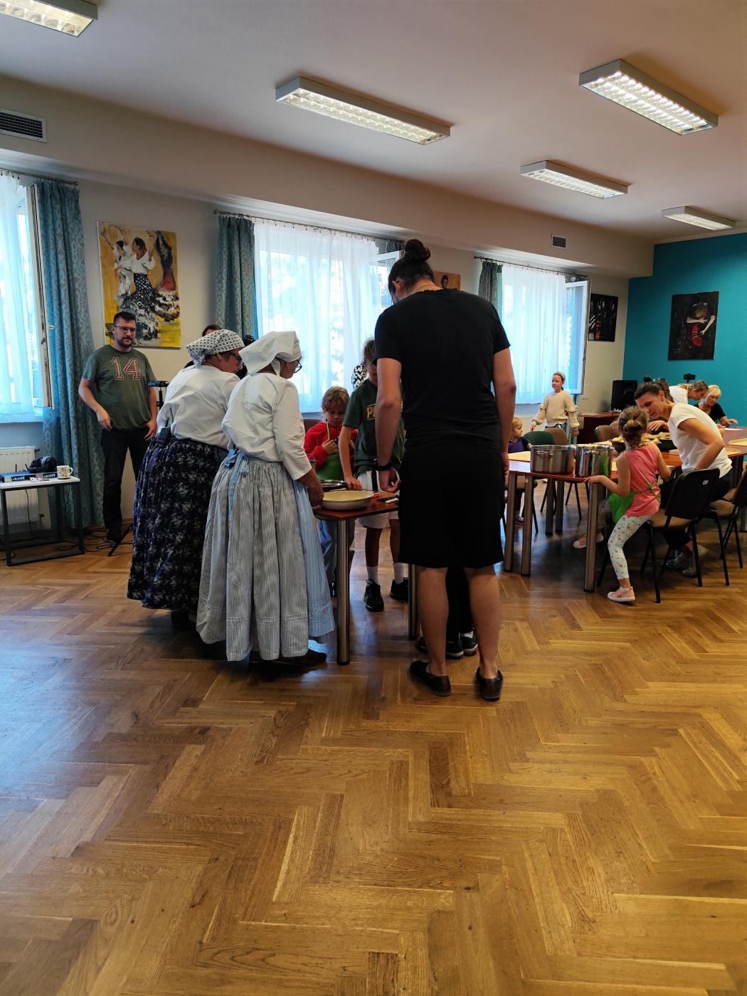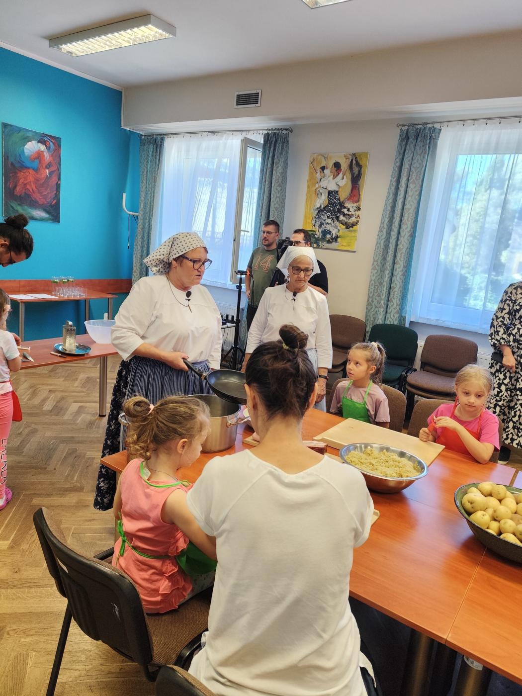 Tak reklamowano te zajęcia kulinarne: Macie ochotę odkryć prawdziwe smaki góralskiej i wiejskiej kuchni? A może chcecie spędzić czas razem w pachnącej, gwarnej i pełnej smaku atmosferze? Zapraszamy Was na rodzinne warsztaty kulinarne prowadzone przez gospodynie ze Stowarzyszenia Społeczno Kulturalnego „Grojcowianie”! W programie wspólnie przygotujemy dwa klasyczne dania: aromatyczną „kwaśnicę” – króla góralskich stołów i rozgrzewającą „ziemniocankę” – prostą, a tak pyszną! Zajęcia odbyły się 20 września (sobota) w Dom Kultury im. Wiktorii Kubisz. Wydarzenie odbyło się w ramach projektu „Beskidzkie etno-przygody” dofinansowanego z programu Narodowego Centrum Kultury „EtnoPolska. Edycja 2025”.