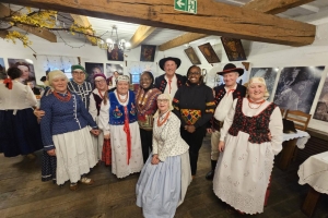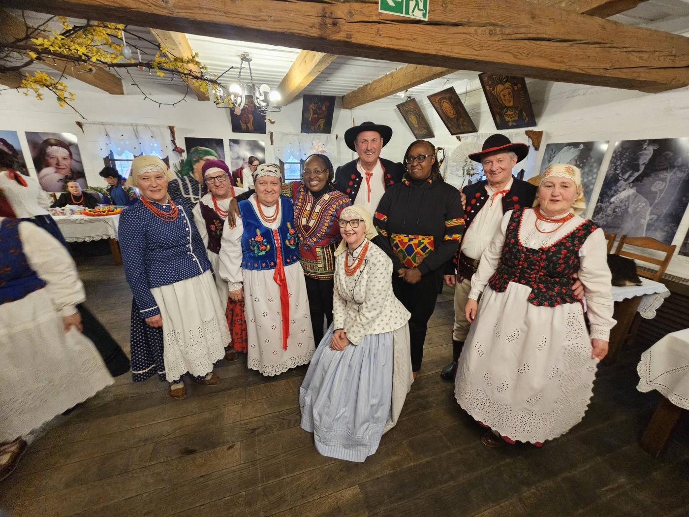 31 marca 2026 r mieliśmy przyjemność być częścią wyjątkowego spotkania kultur na Żywiecczyźnie, którego organizatorem była Fundacja 9sił. W ramach międzynarodowej wizyty studyjnej delegacji z National Museums of Kenya goście z Nairobi i Mombasa poznawali nasze lokalne dziedzictwo – żywe, autentyczne i przekazywane z pokolenia na pokolenie. Podczas programu w Jeleśni Stowarzyszenie Społeczno-Kulturalne "Grojcowianie" w Wieprzu, i grupa ZR „Grojcowianie” miało okazję zaprezentować tradycję w działaniu – poprzez muzykę, śpiew, taniec oraz bezpośrednie spotkanie z lokalną kulturą. Odbył się również wykład Anny Tomiak, poświęcony tradycjom wielkanocnym oraz zwyczajom góralskim i warsztaty prowadzone przez Marię Grzegorek z Juszczyny – naszą lokalną twórczynię i bibułkarkę.