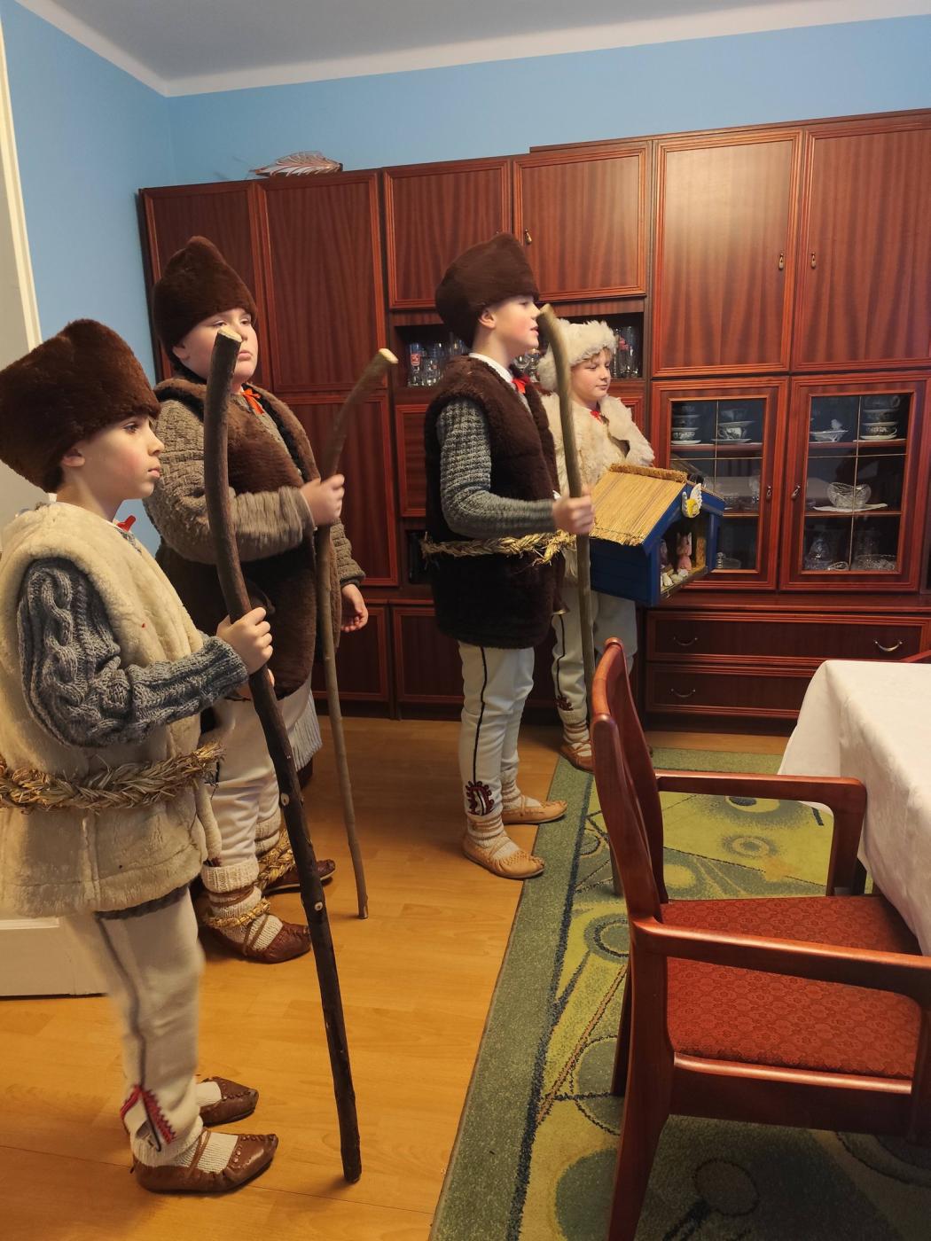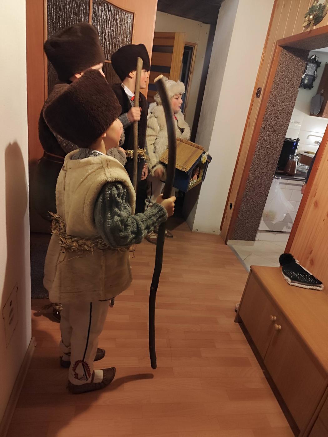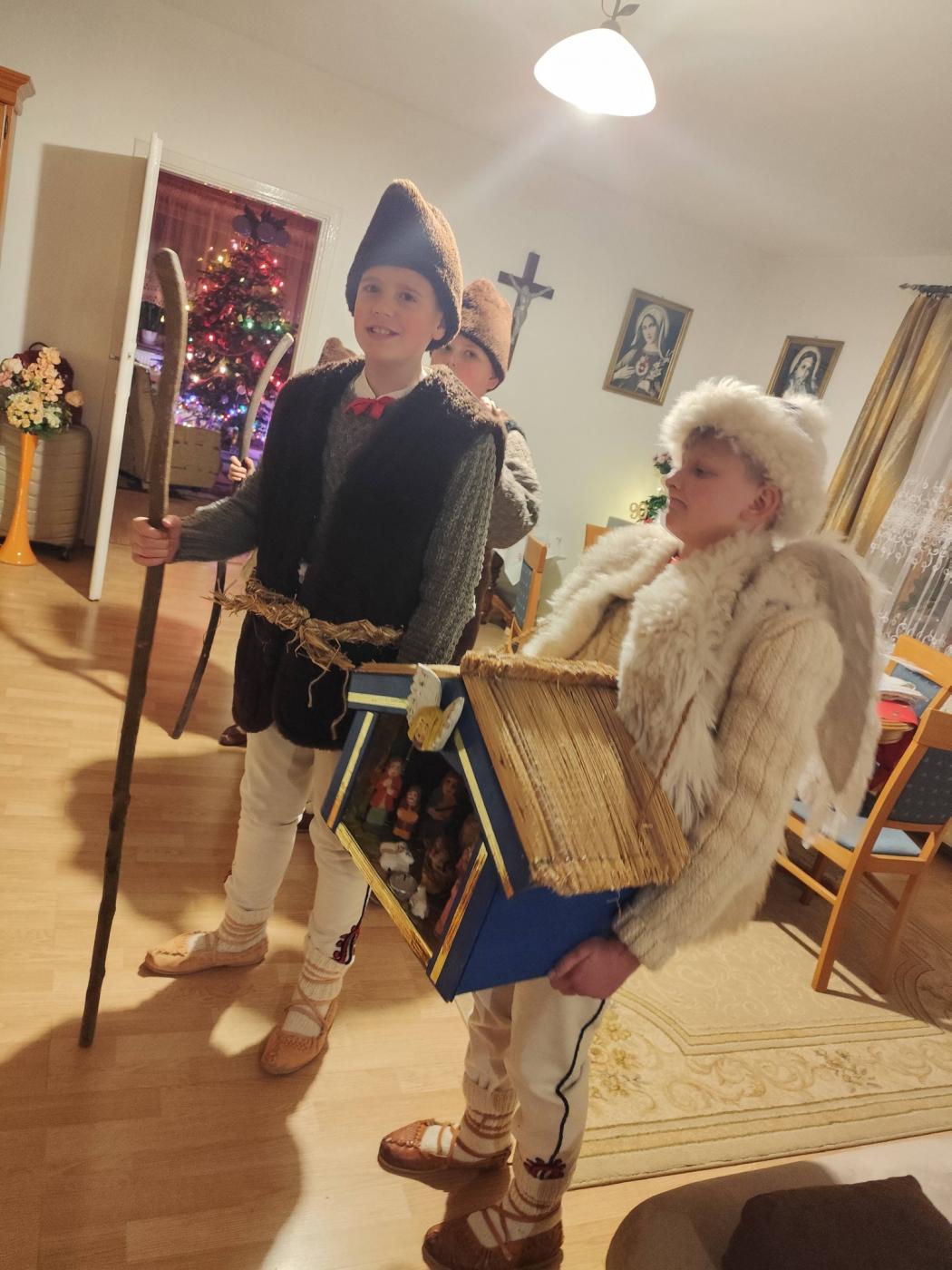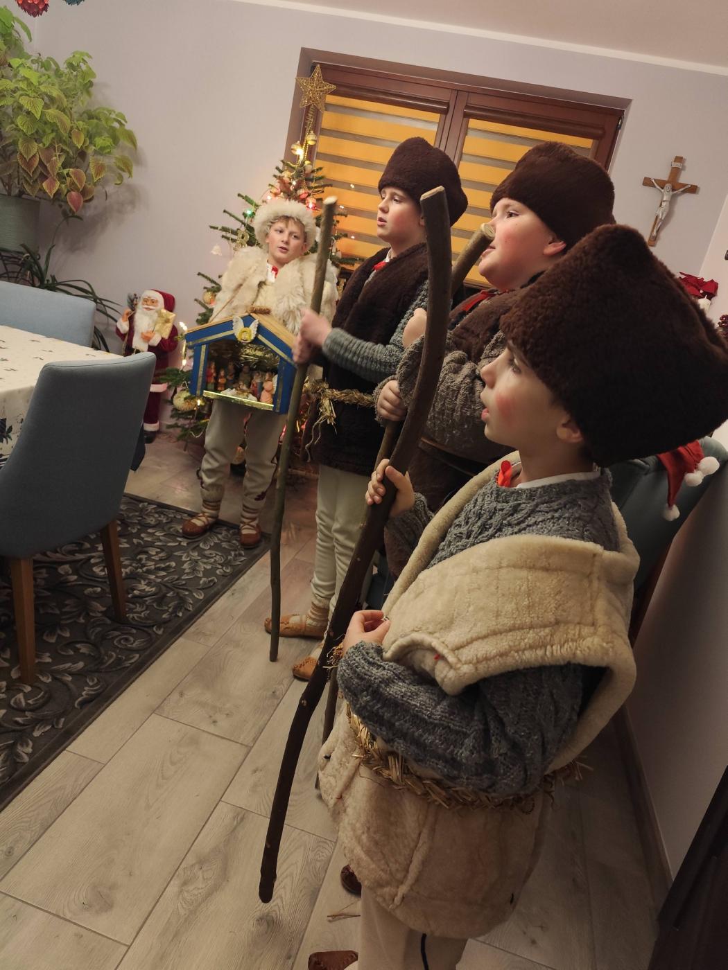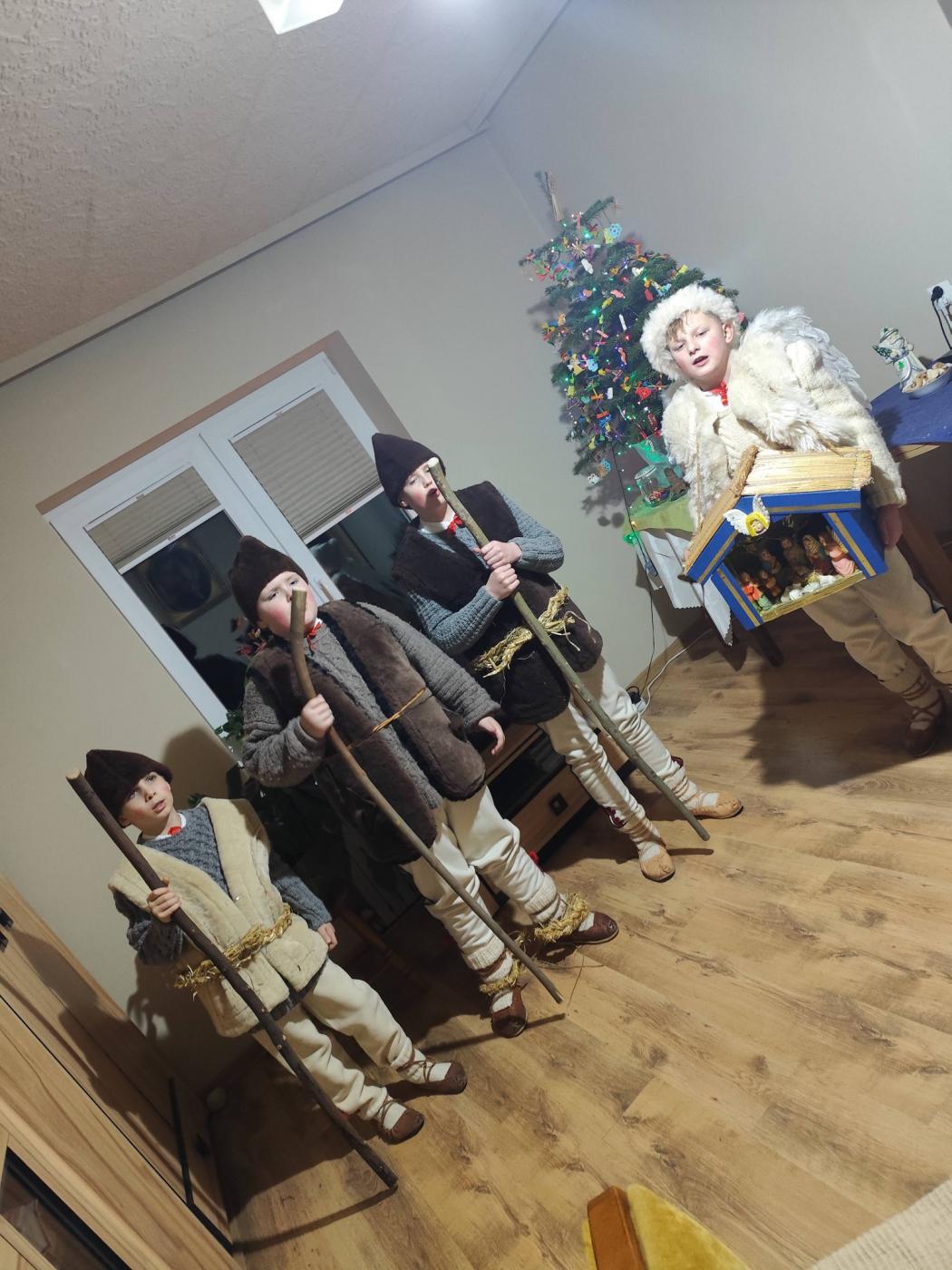 Grupa kolędnicza z Zespołu Regionalnego "Grojcowianie" wyruszyła dziś (27.12.2025 r) by nieść tradycyjną kolędę! W tym roku zdecydowaliśmy się odtworzyć zwyczaj chodzenia pastuszków z aniołem. Pastuszkowie inscenizują scenę wędrówki do Betlejem oraz składania darów i pokłonu nowonarodzonemu Dzieciątku. Wypowiadają przy tym oracje, przeplatające się ze śpiewem. Jest to ludowa forma kolędnicza upamiętniająca pokłon pasterzy, którzy przybyli jako pierwsi by przywitać Jezusa - ukłon w stronę prostego ludu. Tekst, który wygłaszali nasi pastuszkowie pochodzi z 1904 roku, spisany w roku 1935 we wsi Tomusiów i Kuchejdów, pochodzi z publikacji "Boży Rok w zwyczajach i obrzędach ludu żywieckiego.