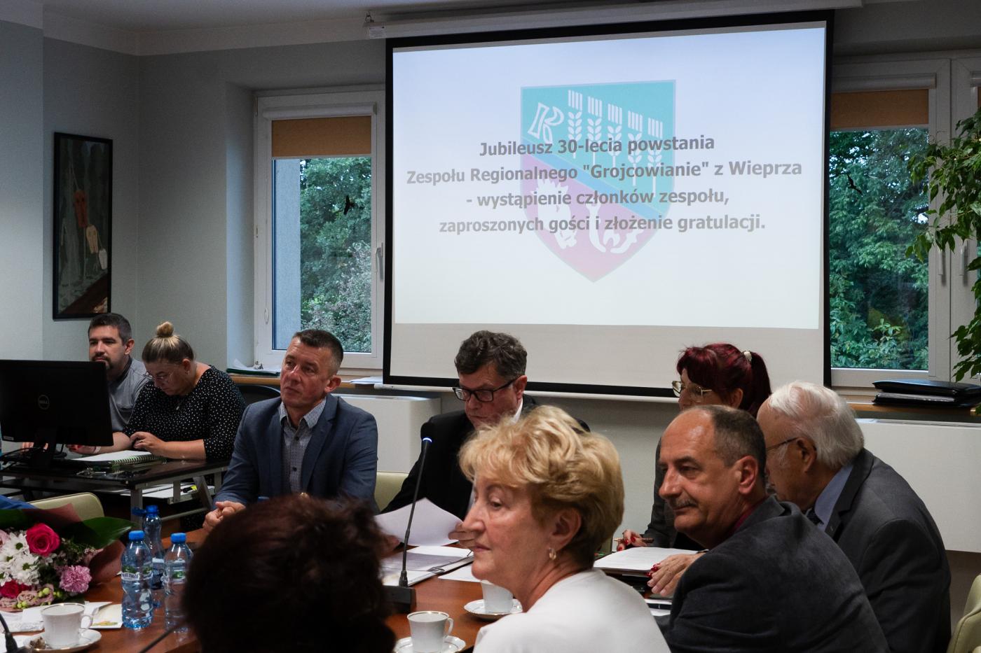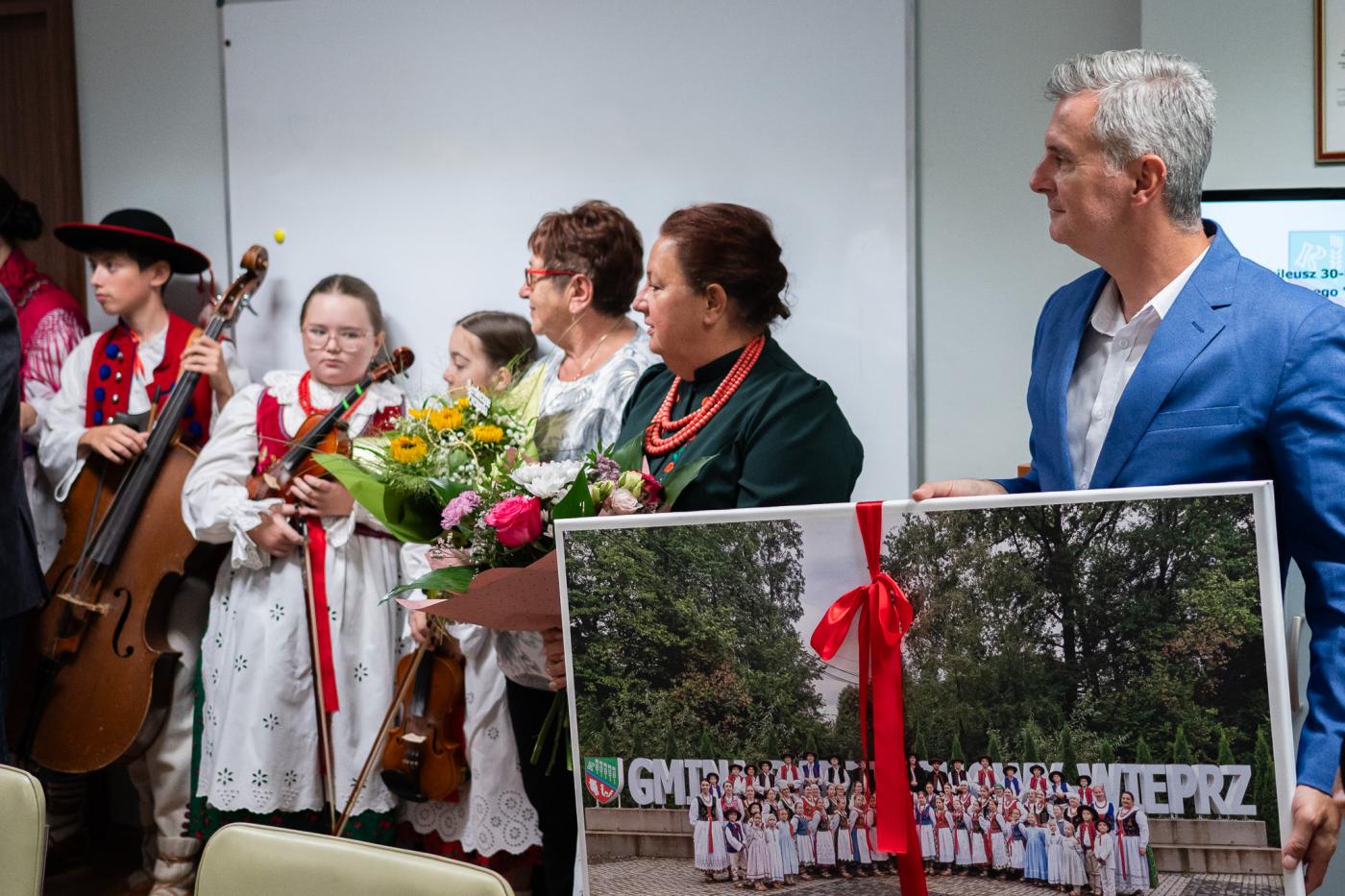 Podczas dzisiejszej Sesji Rady Gminy Radziechowy-Wieprz mieliśmy zaszczyt świętować wyjątkowy Jubileusz 30-lecia Zespołu Regionalnego „Grojcowianie”! Na początku uroczystości przypomniana została bogata historia zespołu – od pierwszych występów, przez liczne nagrody i wyróżnienia, aż po udział w konkursach, przeglądach i festiwalach w kraju i za granicą. To piękne świadectwo trzydziestu lat pracy, pasji i oddania tradycji, które stały się wizytówką naszej gminy. Nie zabrakło wzruszających chwil – przemówienia gości, prezentów, pięknych słów kierownik zespołu Jadwigi Jurasz, gratulacji i podziękowań za trzy dekady pielęgnowania naszej tradycji i kultury. „Grojcowianie” zaprezentowali krótki występ, a także przygotowali niezwykły prezent dla Gminy – pamiątkowe zdjęcie zespołu na tle napisu Radziechowy-Wieprz. Uroczystość zwieńczył wspólny, słodki akcent – jubileuszowy tort przygotowany przez samych jubilatów. Z całego serca dziękujemy Stowarzyszeniu Społeczno-Kulturalnemu "Grojcowianie" w Wieprzu za wszystkie lata niestrudzonego propagowania kultury, tradycji i piękna naszego regionu. Dzięki Waszej pasji, zaangażowaniu i miłości do folkloru młode pokolenia mogą czerpać z bogactwa dziedzictwa przodków jak z silnych korzeni drzewa, które daje życie i trwałość.