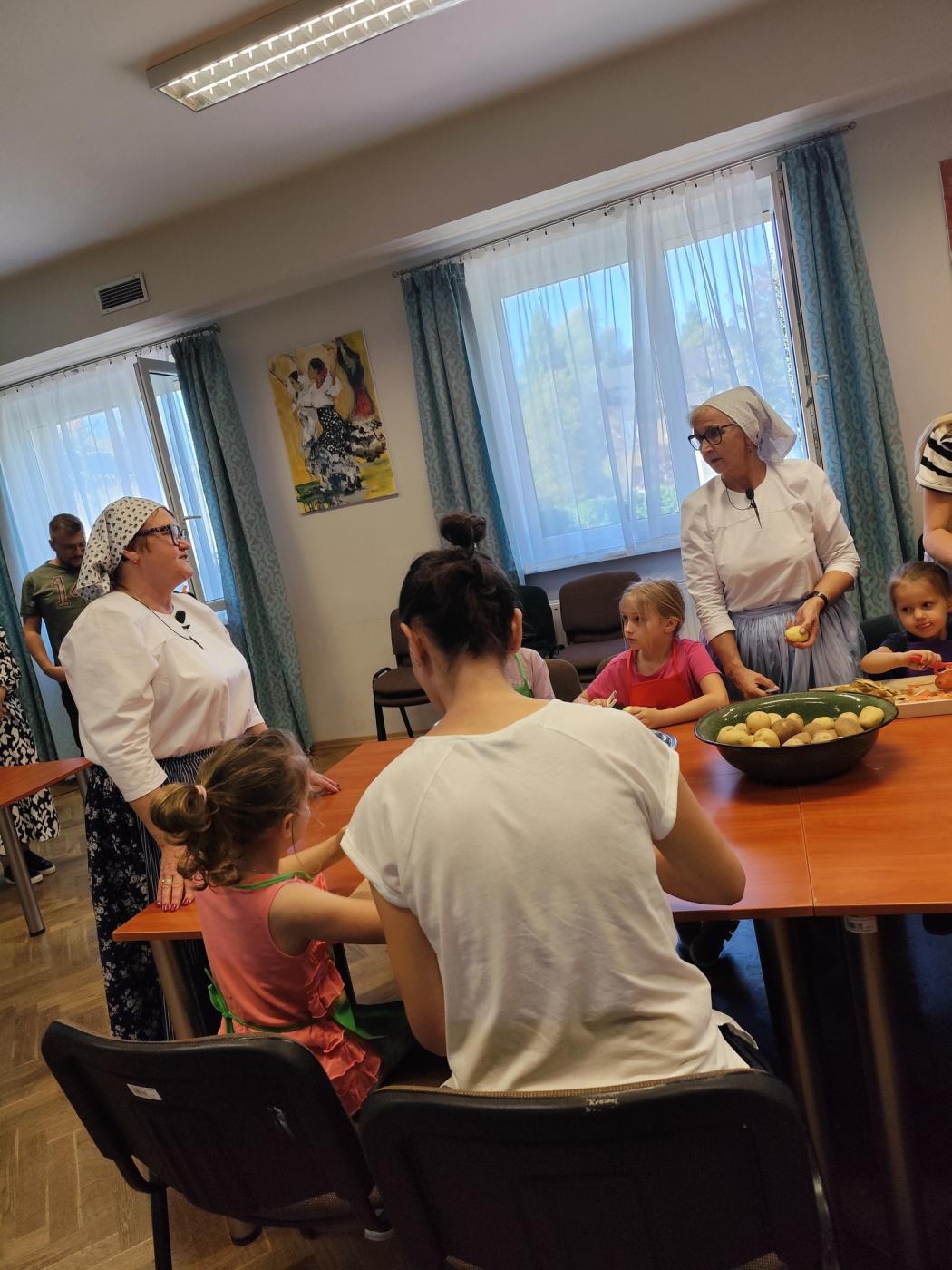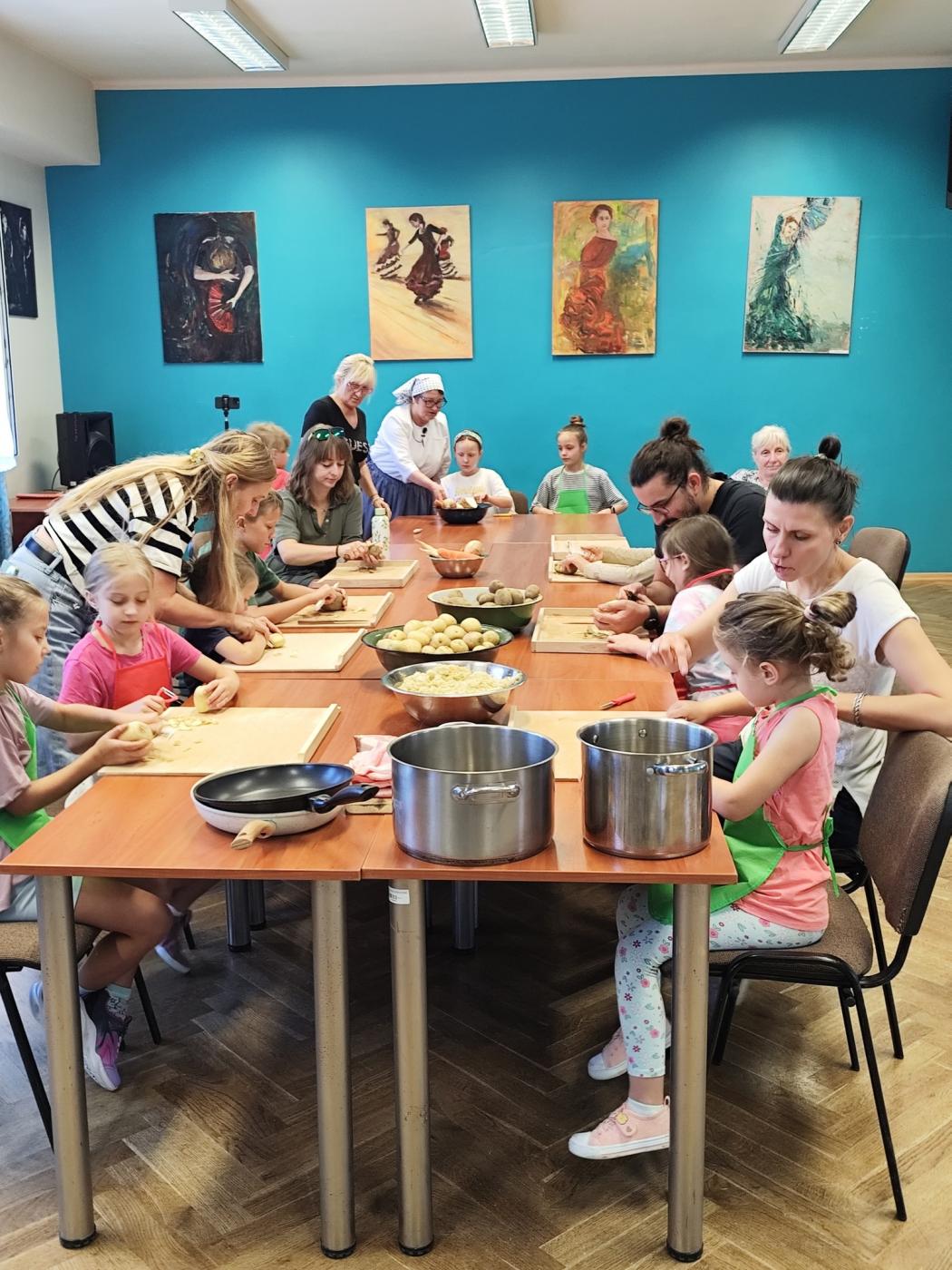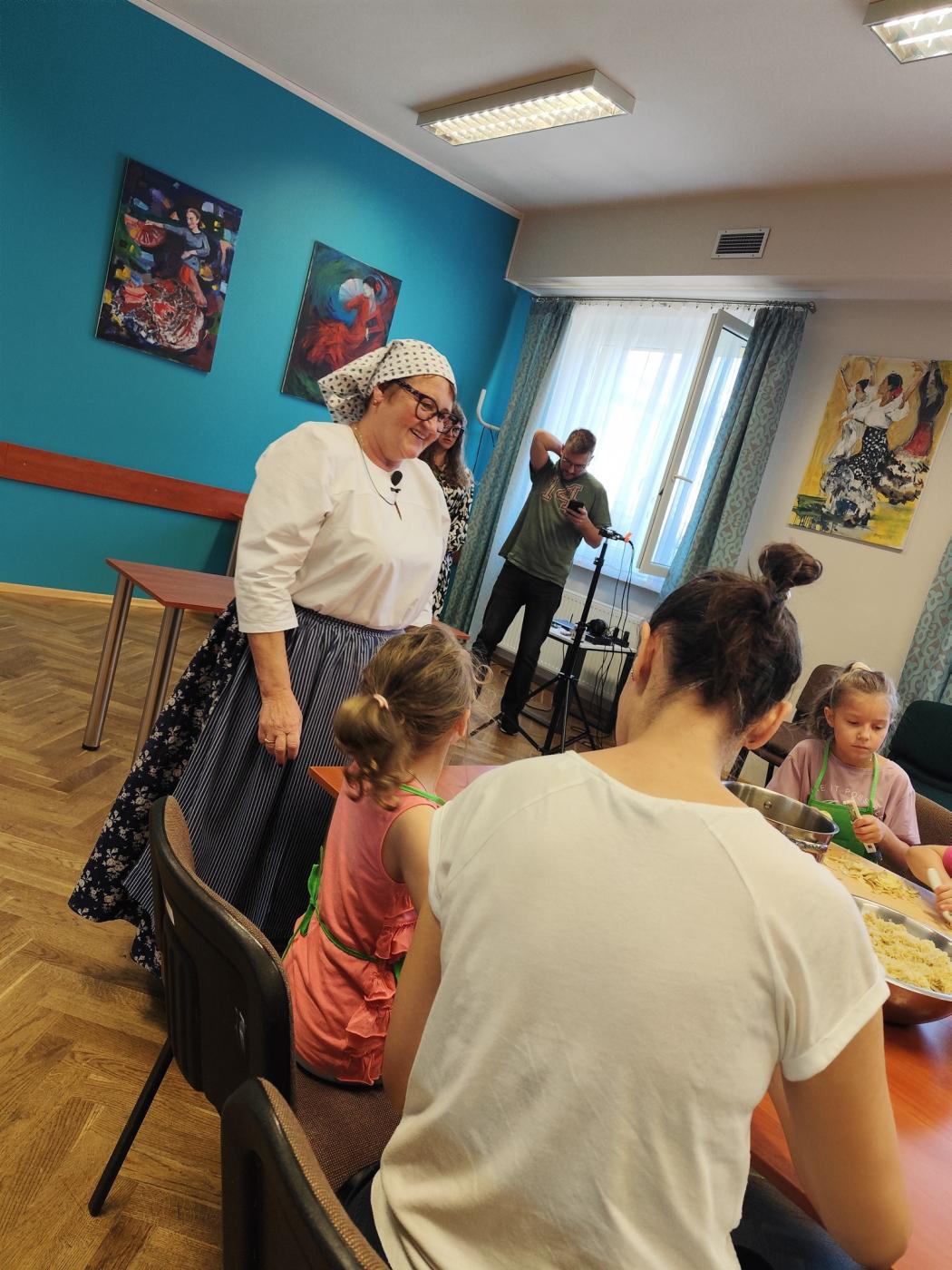 Tak reklamowano te zajęcia kulinarne: Macie ochotę odkryć prawdziwe smaki góralskiej i wiejskiej kuchni? A może chcecie spędzić czas razem w pachnącej, gwarnej i pełnej smaku atmosferze? Zapraszamy Was na rodzinne warsztaty kulinarne prowadzone przez gospodynie ze Stowarzyszenia Społeczno Kulturalnego „Grojcowianie”! W programie wspólnie przygotujemy dwa klasyczne dania: aromatyczną „kwaśnicę” – króla góralskich stołów i rozgrzewającą „ziemniocankę” – prostą, a tak pyszną! Zajęcia odbyły się 20 września (sobota) w Dom Kultury im. Wiktorii Kubisz. Wydarzenie odbyło się w ramach projektu „Beskidzkie etno-przygody” dofinansowanego z programu Narodowego Centrum Kultury „EtnoPolska. Edycja 2025”.
