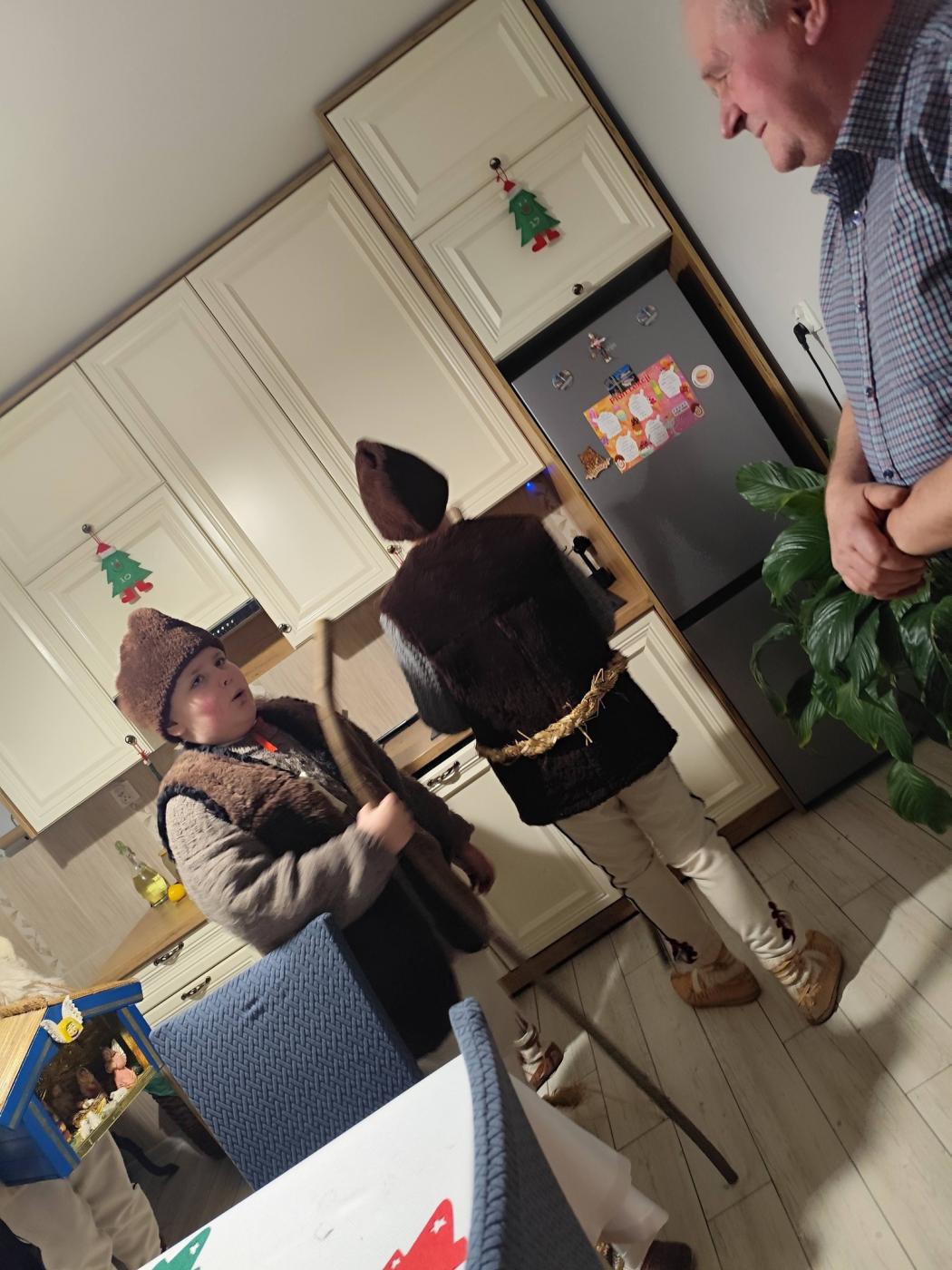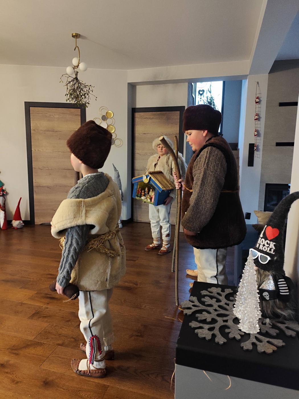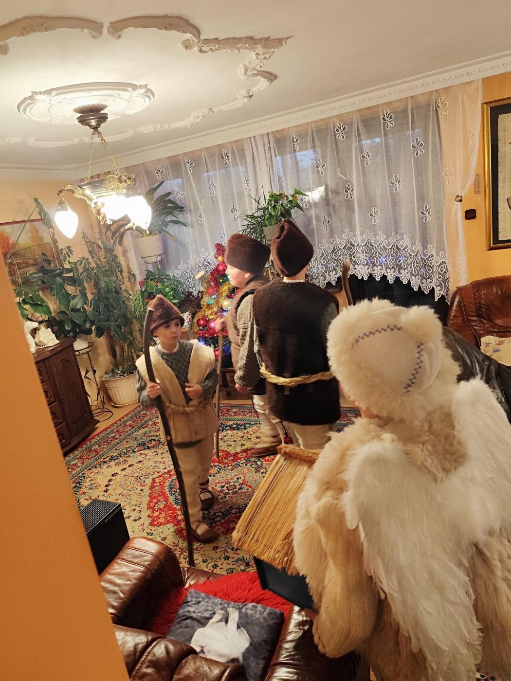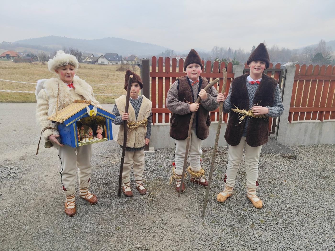 Grupa kolędnicza z Zespołu Regionalnego "Grojcowianie" wyruszyła dziś (27.12.2025 r) by nieść tradycyjną kolędę! W tym roku zdecydowaliśmy się odtworzyć zwyczaj chodzenia pastuszków z aniołem. Pastuszkowie inscenizują scenę wędrówki do Betlejem oraz składania darów i pokłonu nowonarodzonemu Dzieciątku. Wypowiadają przy tym oracje, przeplatające się ze śpiewem. Jest to ludowa forma kolędnicza upamiętniająca pokłon pasterzy, którzy przybyli jako pierwsi by przywitać Jezusa - ukłon w stronę prostego ludu. Tekst, który wygłaszali nasi pastuszkowie pochodzi z 1904 roku, spisany w roku 1935 we wsi Tomusiów i Kuchejdów, pochodzi z publikacji "Boży Rok w zwyczajach i obrzędach ludu żywieckiego.