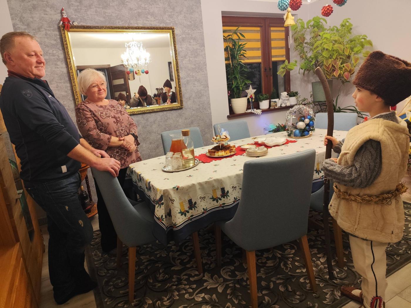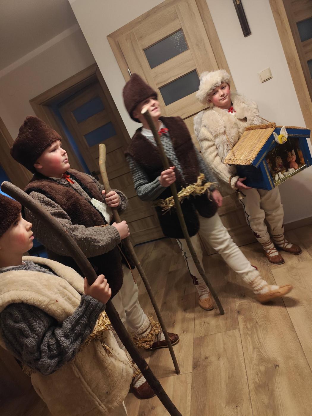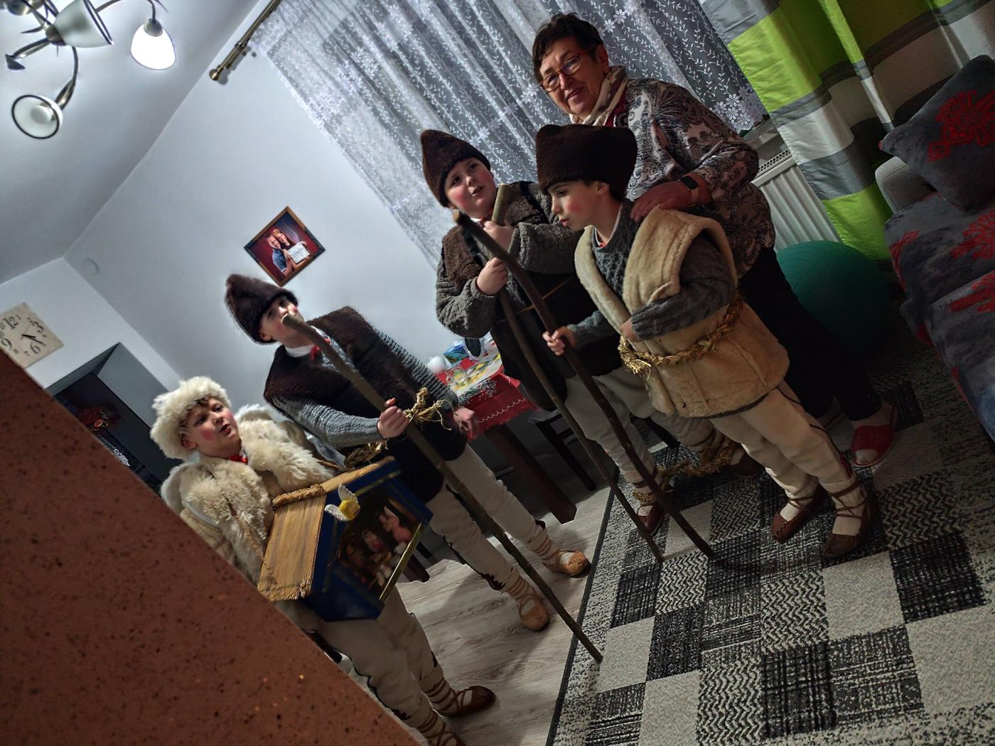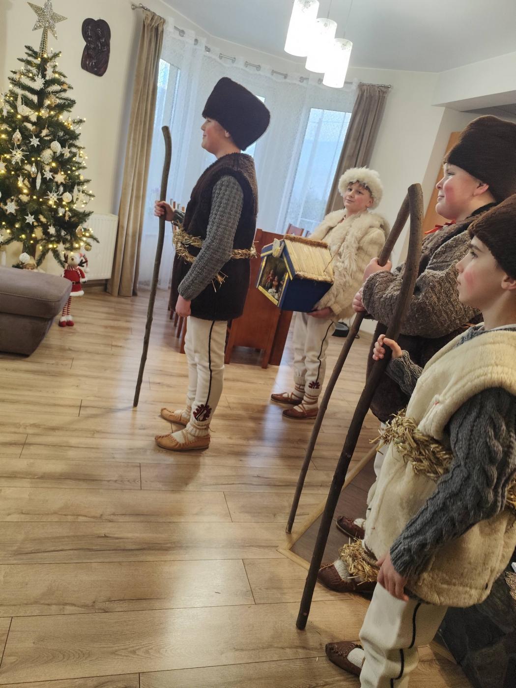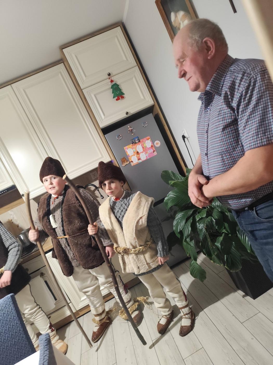 Grupa kolędnicza z Zespołu Regionalnego "Grojcowianie" wyruszyła dziś (27.12.2025 r) by nieść tradycyjną kolędę! W tym roku zdecydowaliśmy się odtworzyć zwyczaj chodzenia pastuszków z aniołem. Pastuszkowie inscenizują scenę wędrówki do Betlejem oraz składania darów i pokłonu nowonarodzonemu Dzieciątku. Wypowiadają przy tym oracje, przeplatające się ze śpiewem. Jest to ludowa forma kolędnicza upamiętniająca pokłon pasterzy, którzy przybyli jako pierwsi by przywitać Jezusa - ukłon w stronę prostego ludu. Tekst, który wygłaszali nasi pastuszkowie pochodzi z 1904 roku, spisany w roku 1935 we wsi Tomusiów i Kuchejdów, pochodzi z publikacji "Boży Rok w zwyczajach i obrzędach ludu żywieckiego.