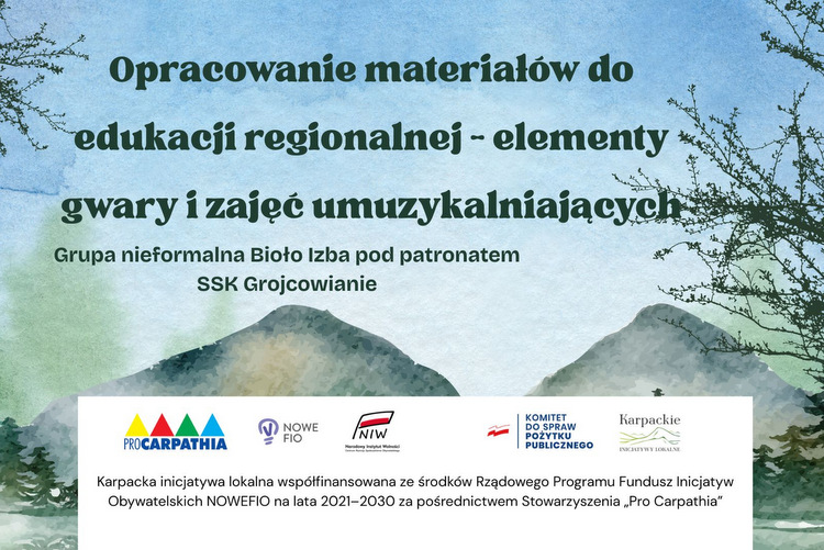 W ostatnich latach naszej działalności zaobserwowaliśmy dużą potrzebę podnoszenia świadomości o przynależności regionalnej, szczególnie wśród dzieci i młodzieży uczęszczających na zajęcia do obu grup działających przy Stowarzyszeniu. Przez fakt coraz częściej zanikającego kultywowania lokalnych tradycji, w wiejskich społecznościach, rodzinach znacznie zwiększyła się potrzeba uświadamiania społeczeństwa na temat ich pochodzenia czy też regionalnego dziedzictwa takiego jak: zwyczaje i obrzędy, gwara, tradycyjny taniec, śpiew biały, umiejętność gry na instrumentach charakterystycznych dla zamieszkiwanego przez nas obszaru. Szczególną uwagę zwraca zjawisko zaniku gwary Górali Żywieckich stosowanej jako języka codziennej komunikacji. Edukacja regionalna jest jednym z najważniejszych przedsięwzięć, nad którym chcemy pracować. Uważamy także, że w dzisiejszych czasach kluczowym zagadnieniem jest umożliwienie dzieciom i młodzieży kontaktu z naturą i możliwości poznawania kultury ich przodków w jej naturalnym środowisku. W ramach dofinansowania z projektu Karpackie inicjatywy lokalne opracowaliśmy materiały edukacyjne, które pozwolą nauczycielom, instruktorom czy też animatorom kultury na prowadzenie zajęć z wartościowymi źródłami. Oddajemy w Państwa ręce gotowe materiały edukacyjne do wykorzystania.